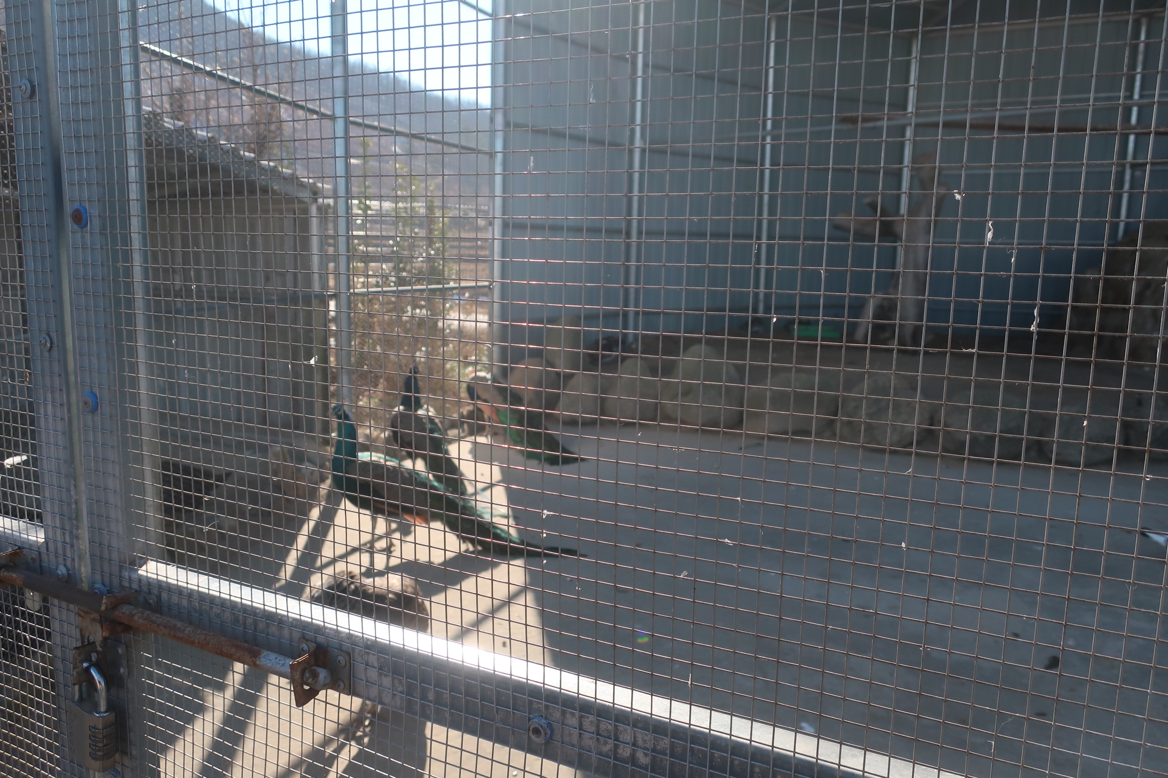공작새도 있습니다. 깃털을 편 모습은 보지 못했지만 지금도 매우 아름답습니다.