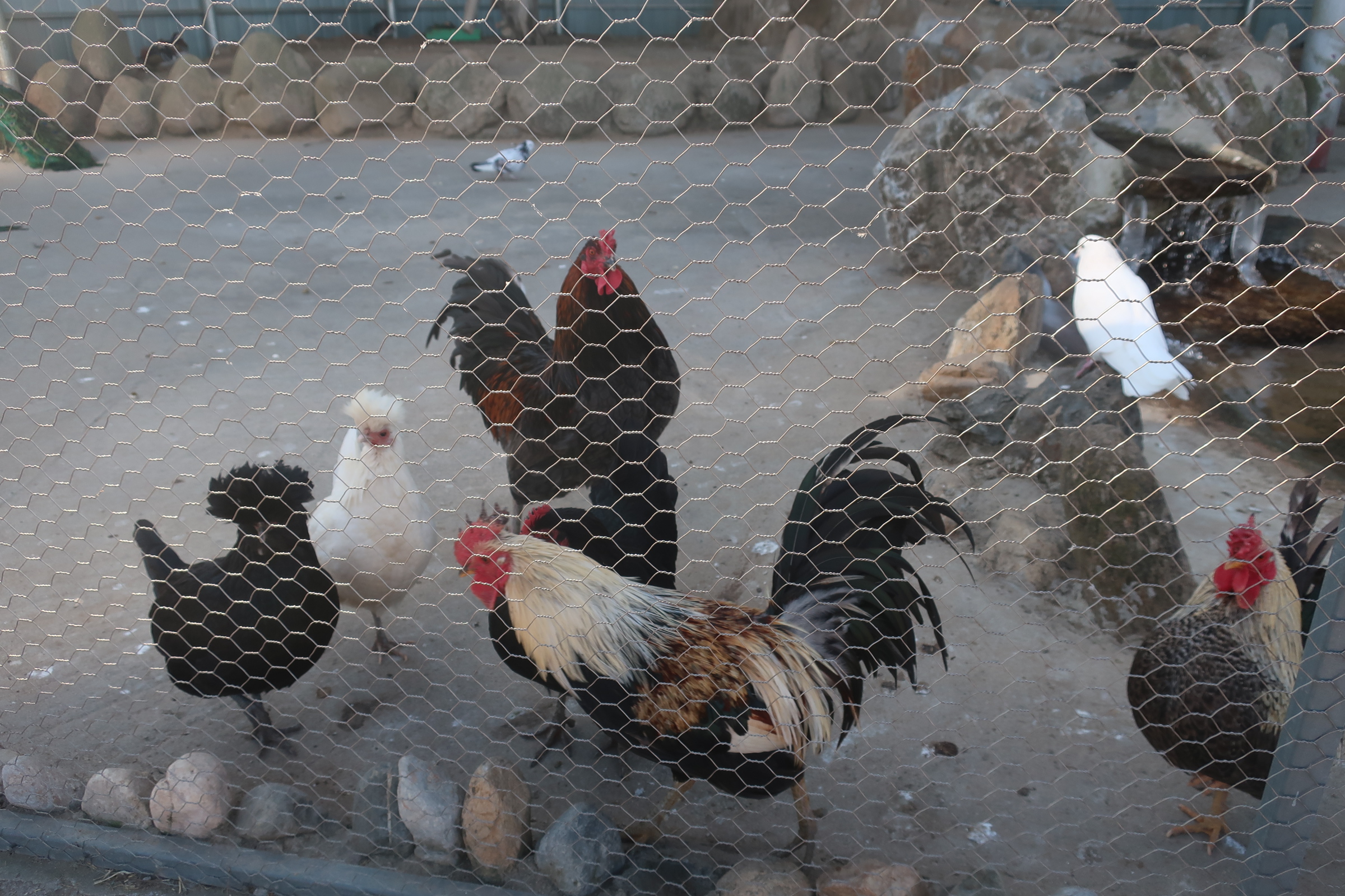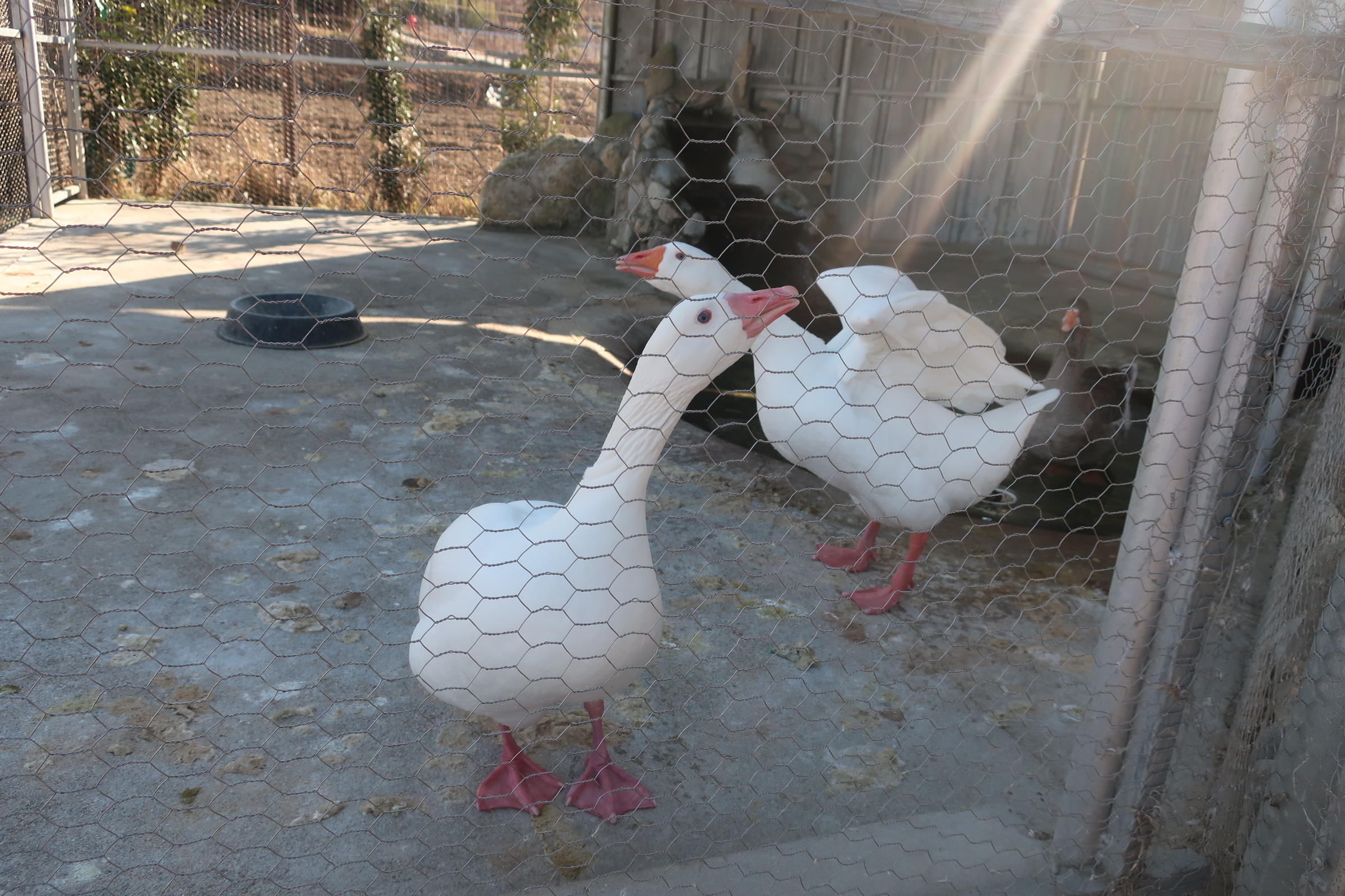 입구 쪽엔 이렇게 닭과 오리, 공작들의 새장이 있구요.