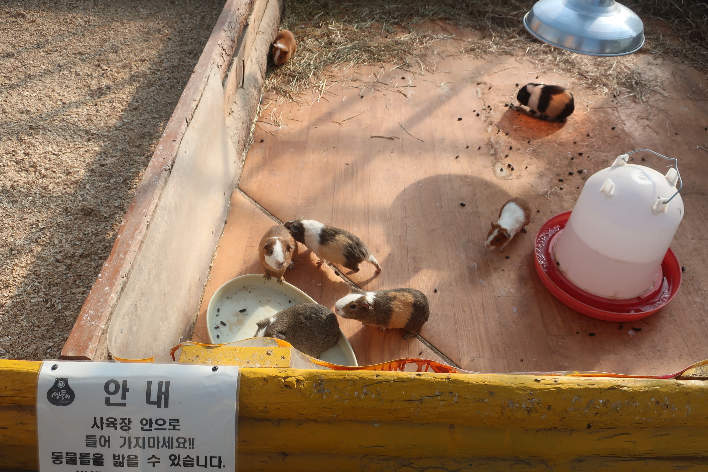 기니피그 우리도 있습니다. 먹이를 잘 먹고 있는지 통통하고 털도 반질반질합니다. 이만큼 동물을 보려면 여느 동물원은 하루종일 돌아야 하는데 쌍둥이 동물농장은 금방 둘러볼 수 있어서 좋습니다. 관리가 잘 되는지 냄새도 거의 나지 않고 동물들도 건강해 보였습니다. 입장료는 1인 8천원이며 네이버 예약으로 방문하면 7천원도 가능합니다. 아이가 있는 가족이라면 강릉여행에서 쌍둥이 동물농장을 방문해 보세요.