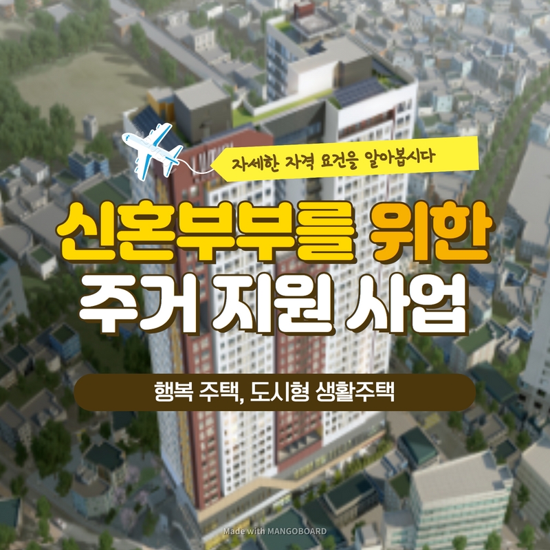 안녕하세요. 오늘은 신혼부부를 위한 주거지원사업을 소개하겠습니다. 최근 7년 이내에 결혼했고 입주 전 혼인 증빙이 가능하다면 오늘 소개드리는 주거지원사업들을 눈여겨 보세요!