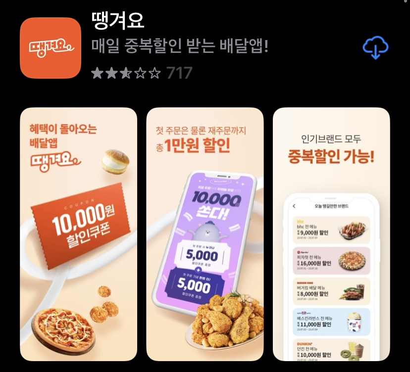 할인 혜택을 받기 위해서는 일단 땡겨요 앱을 설치해야 합니다. 아주 쉬우니 따라오세요. 팔로팔로미~