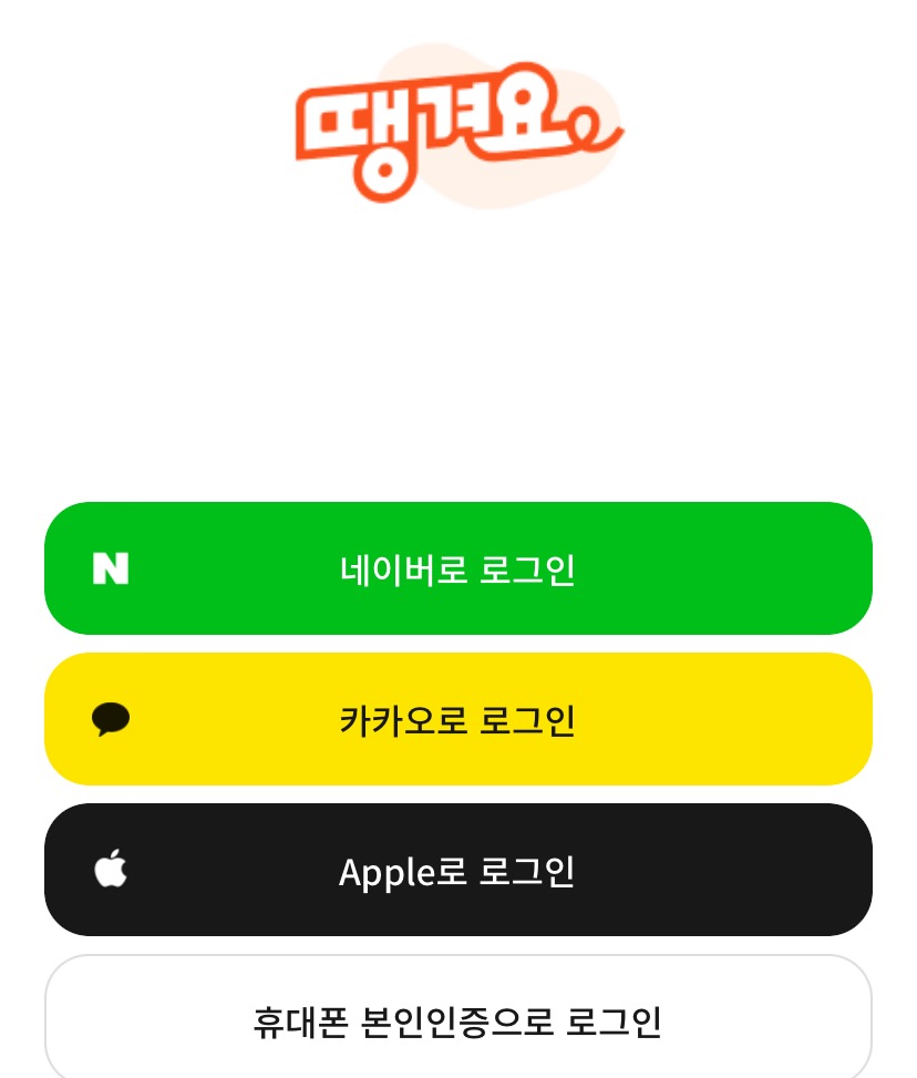 요새 여느 앱이 그렇듯이 네이버, 카카오, 애플 등 다양한 로그인 방법을 제공합니다. 저는 타사 정보를 넘기는 것이 찜찜해서 휴대폰 본인인증으로 로그인을 했습니다.