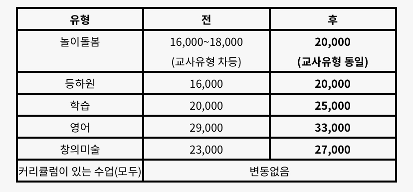 원래 돌봄 비용이 대학생, 보육교사 별로 차등이 있었는데 이제 차등없이 시간당 2만원으로 정해졌네요.