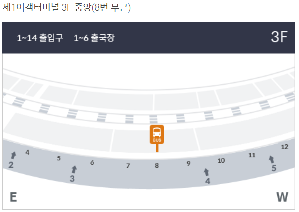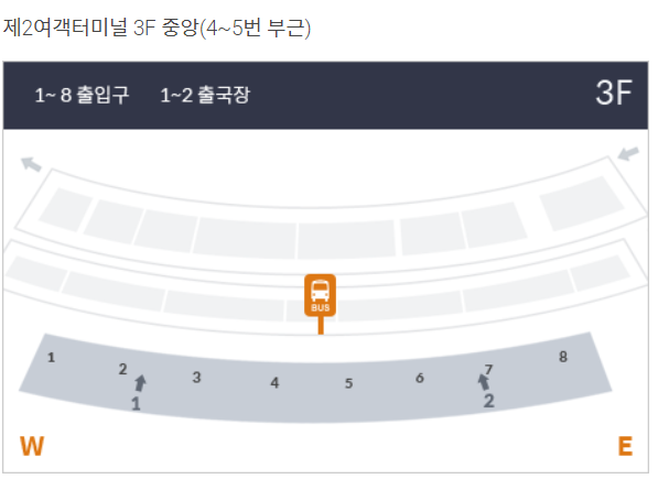 제2여객터미널 3층 5번 게이트 앞 승차장에서 탑승