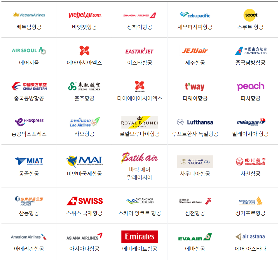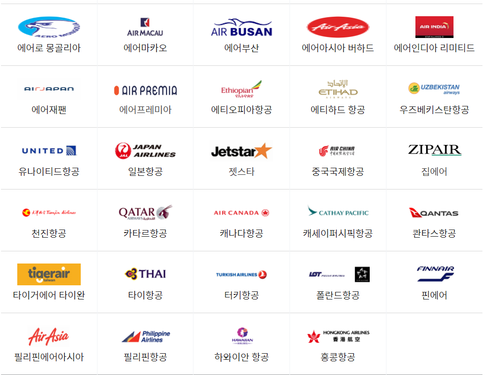 인천공항 제 1터미널 취항 항공사