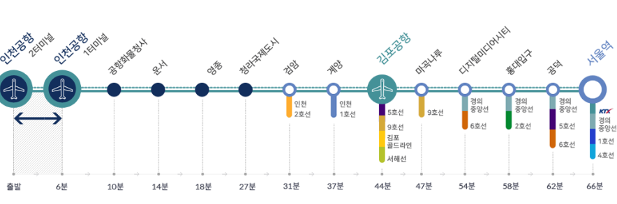 공항철도로 터미널간 이용 시에는 유료로 이용가능합니다.(금액 : 900원)