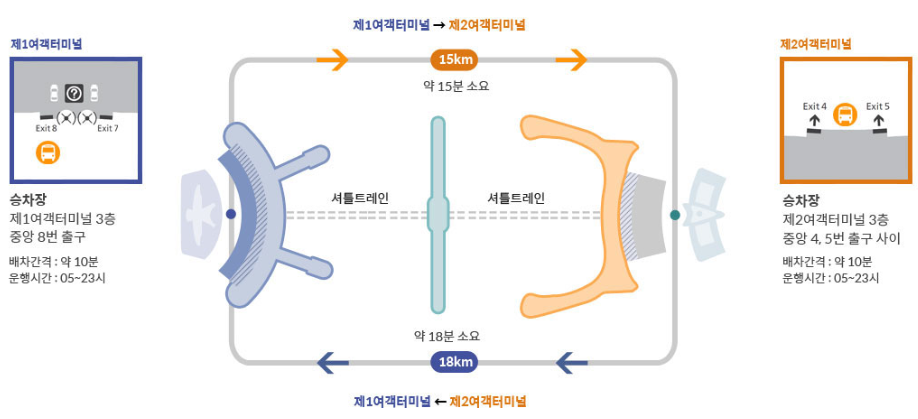 제2여객터미널에서 제1여객터미널로 가는 방법