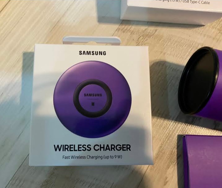 무선 충전기 또한 보라색입니다. 빠르게 와이어리스 충전이 된다고 쓰여 있네요. 무선 충전기는 나온지 꽤 되었지만 볼때마다 신기한 제품입니다.