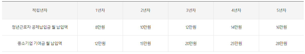 -기업 : 5년간 1,200만원 적립(최소 월 20만원 × 60개월)