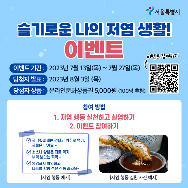 서울특별시 슬기로운 나의 저염 생활! 이벤트 이벤트 참여하기