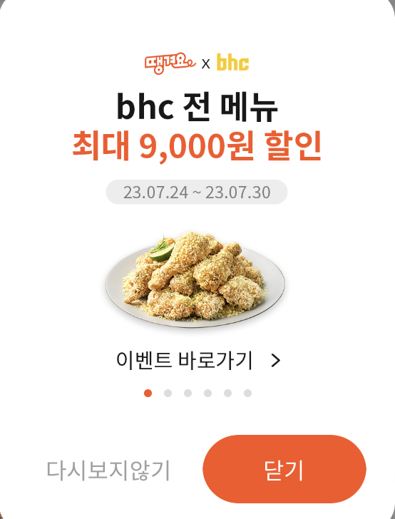 요새 날씨도 덥고 배달 많이 시켜 드시죠? BHC 치킨을 땡겨요 앱으로 주문해 보았는데요. 할인 혜택이 꽤 쏠쏠했습니다.